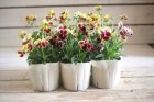 同じ植物をでも個人の感性で変わる寄せ植え。玄関にお庭に素朴なセンスを。