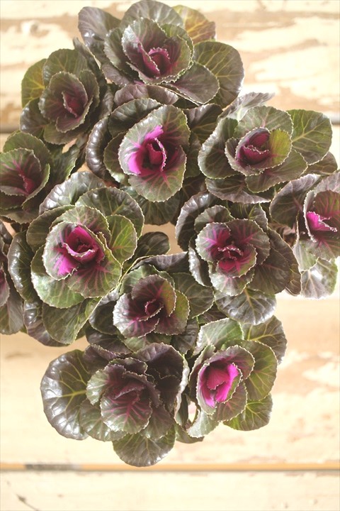 マットなハボタンも素敵ですが光沢のある光子を使って寄せ植えやリースを作ると