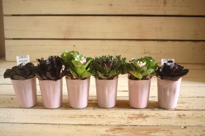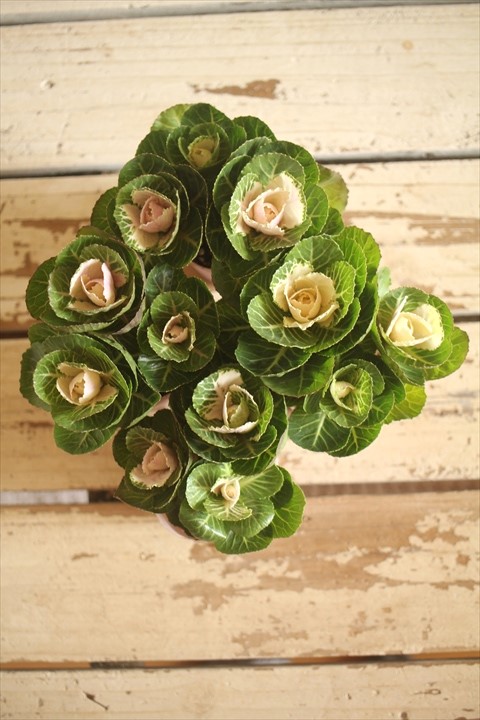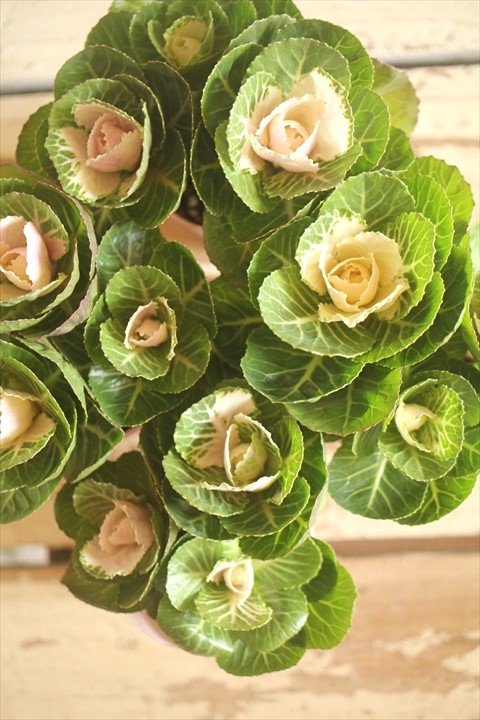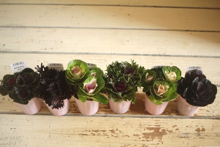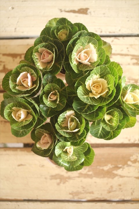 マットなハボタンも素敵ですが光沢のある光子を使って寄せ植えやリースを作ると